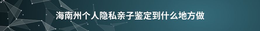 一、海南州个人隐私亲子鉴定到什么地方做?